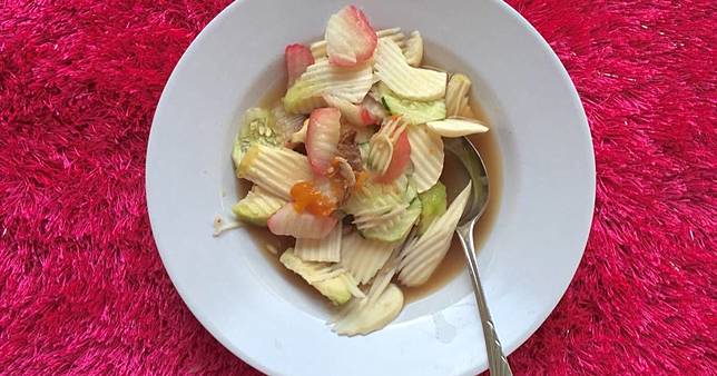 Ada rujak bulung, maka kini hadir juga rujak kuah pindang. Rujak ini memiliki bahan dasar yang sama seperti rujak pada umumnya, seperti pepaya dan belimbing. Hanya saja, rujak ini disajikan dengan kuah kaldu ikan pindang. Dengan bahan campuran seperti terasi, garam dan cabe. Dijamin cita rasanya akan membuat kamu ketagihan jika mencobanya!