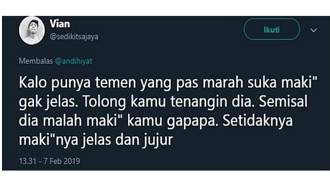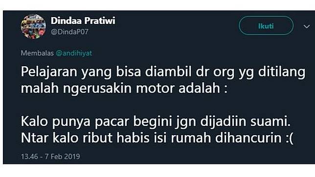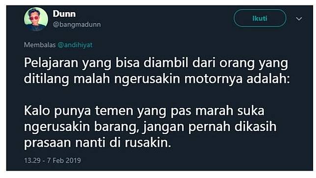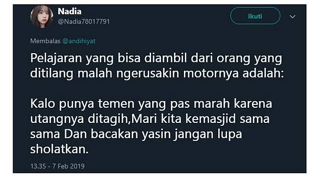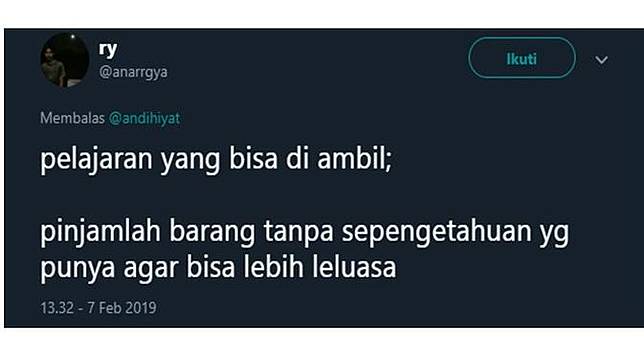 Respons warganet terkait pelajaran yang bisa diambil ini telah dirangkum Liputan6.comdari akun Twitter @andihiyat, Kamis (7/2/2019).
